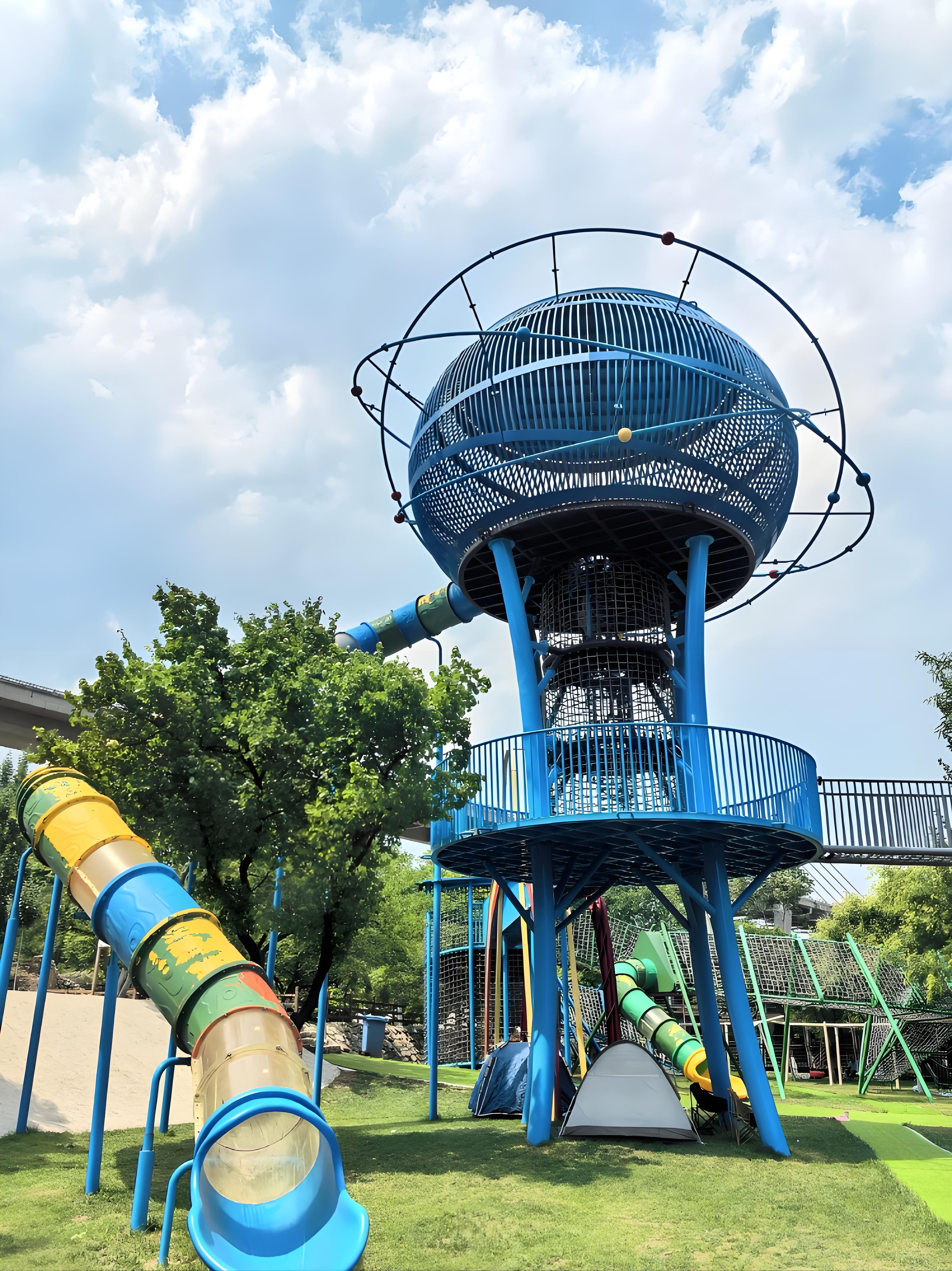 巨型星球滑梯高达10米,串联长滑梯与短滑梯,适配3岁+至青少年不同年龄段的挑战需求。